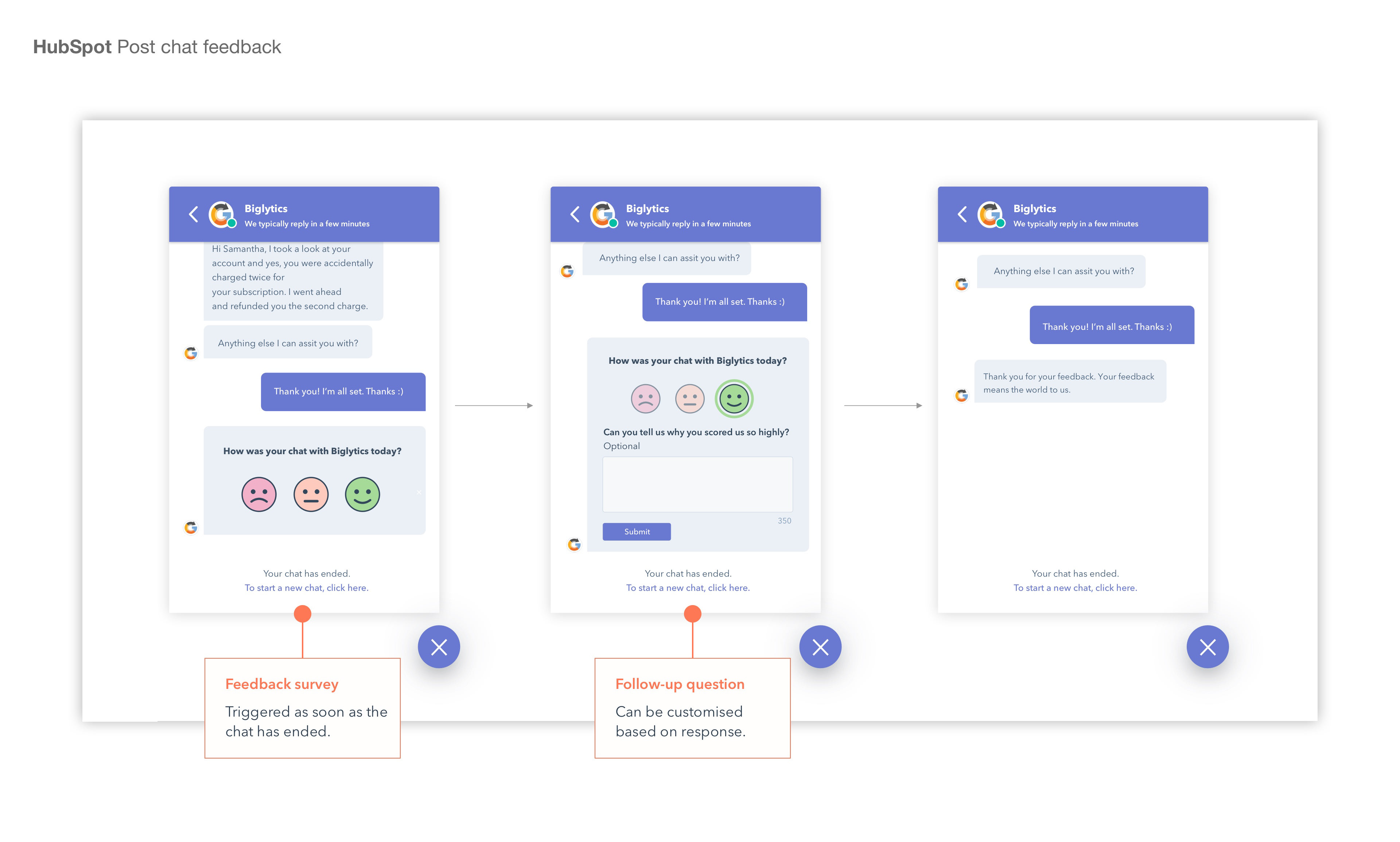 Post-chat feedback was released at the end of 2021. Aligning with HubSpot's goal of emphasising Visitor Experience as a key element of business growth.